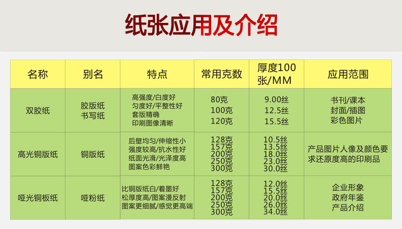 各類定制表格